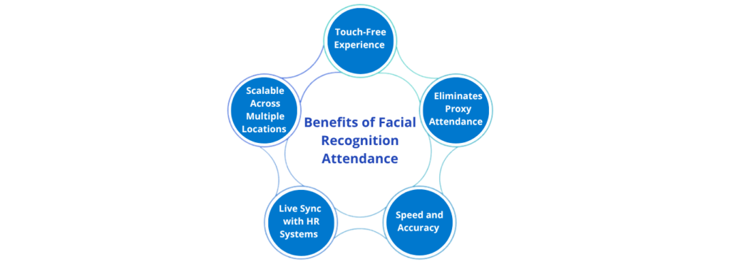 Facial recognition technology uses artificial intelligence to authenticate an employee’s identity based on facial features; thereby, removing the need for physical interaction, cards, or touch-based biometrics.